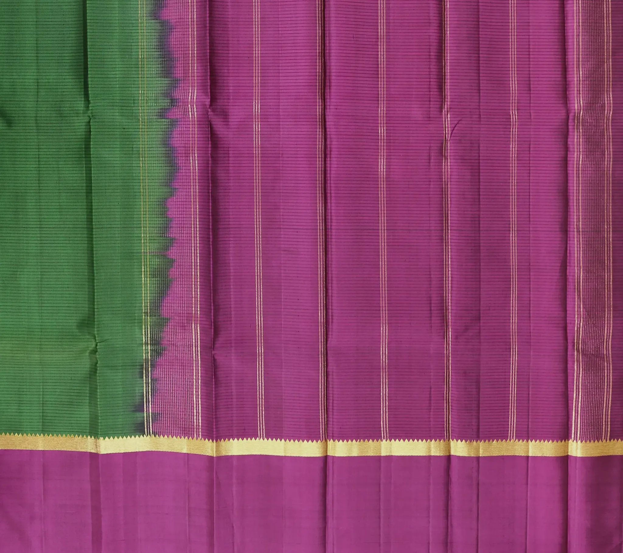 Arani Silk Sarees brings you a Dark Green Arani Silk with a refined blend of tradition and elegance with contrasting Magneta Purple combination.