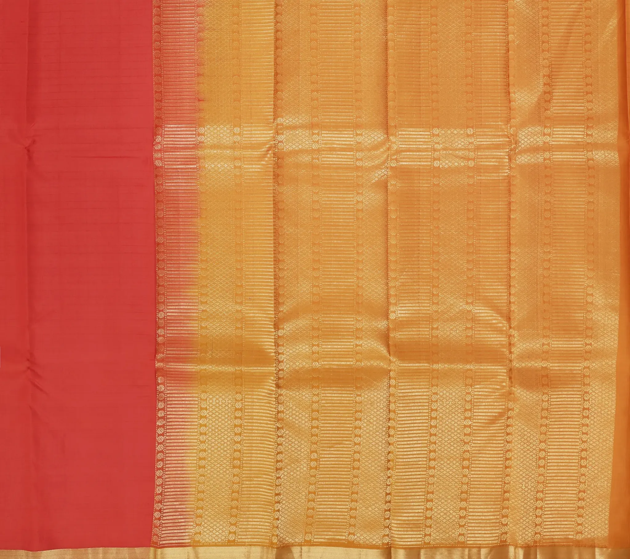 Arani Silk Sarees brings you a Red Arani Silk with a refined blend of tradition and elegance with contrasting Apricot Orange combination.